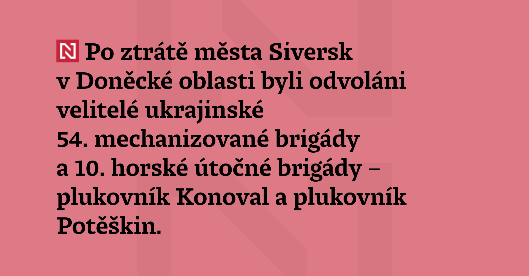 Po ztrátě města Siversk v Doněcké oblasti byli odvoláni velitelé ukrajinské 54. mechanizované brigády a 10. horské útočné brigády – plukovník Konoval a plukovník Potěškin. Oba údajně podávali svému velení nepravdivé informace o situaci na frontě. Konoval měl za úkol bránit samotné město Siversk, Potěškin byl se svými vojáky jižně od města. Oba měli svým nadřízeným tvrdit, že jsou stále na pozicích, […]