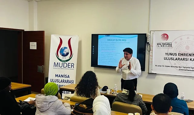 (MHA) Manisa Uluslararası Öğrenci Derneği (MUDER) tarafından yürütülen ve Sivil Toplumla İlişkiler Genel Müdürlüğü'nün desteklediği "Yunusemre'nin İzinde Uluslararası Kardeşlik" projesi kapsamında düzenlenen seminerler devam ediyor. Projenin önemli ayaklarından biri olan dış ticaret eğitimleri çerçevesinde, ikinci seminer Manisa Celal Bayar Üniversitesi (MCBÜ) öğretim üyesi Doç. Dr. İsmail Metin'in sunumuyla gerçekleştirildi.