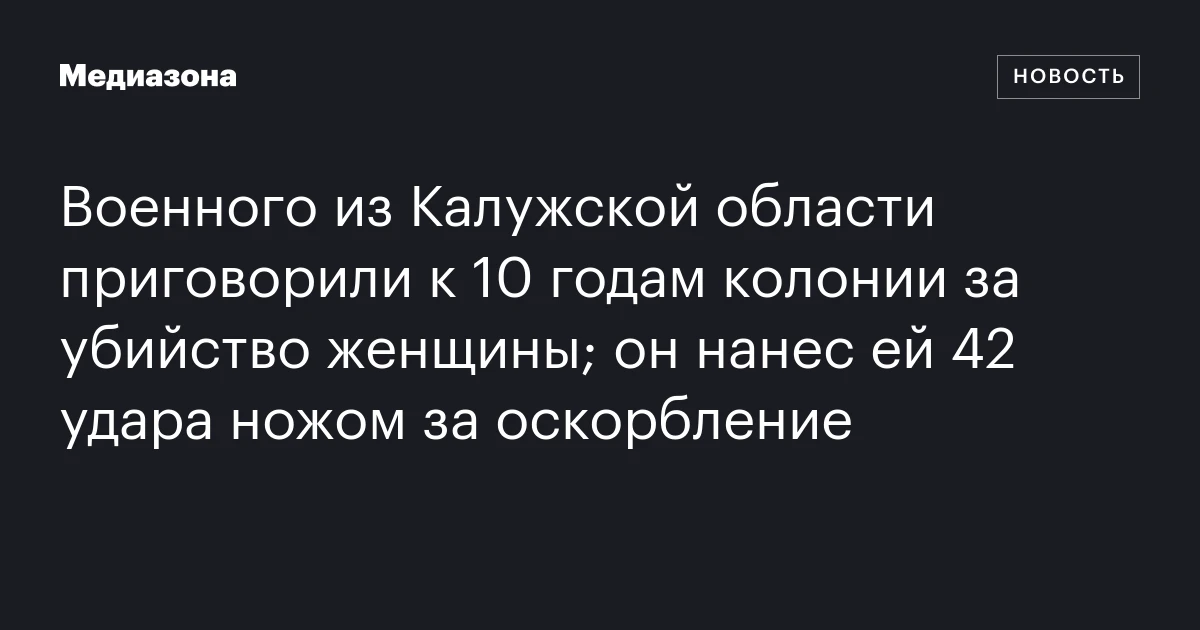 Военного из Калужской области приговорили к 10 годам колонии за убийство женщины; он нанес ей 42 удара ножом за оскорбление