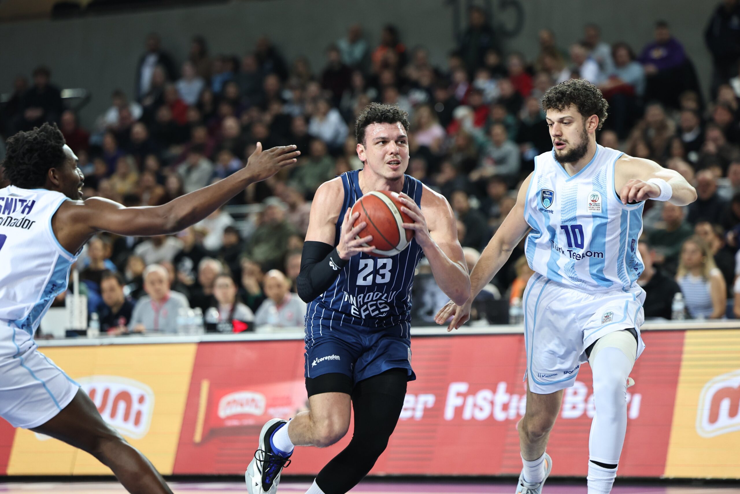 Türkiye Sigorta Basketbol Süper Ligi’nde Türk Telekom, Anadolu Efes’i konuk etti. Karşılaşmayı Türk Telekom 75-70 kazandı. Mücadelenin ilk yarısını Şehmus ve Cordinier’in etkili performanslarıyla Anadolu Efes 36-38 önde tamamladı. Final periyoduna girilirken de tabelada 54-59 Anadolu Efes üstünlüğü vardı. Bitime 3:38 kala Türk Telekom, Jaleen Smith’in üçlüğü ile skoru eşitledi; 66-66. 3 dakika kala bir […] The post Telekom, Efes’i son çeyrekte yıktı first appeared on Basket Dergisi | Basketbol, Basketbol Haberleri, Basketbol Maçı .