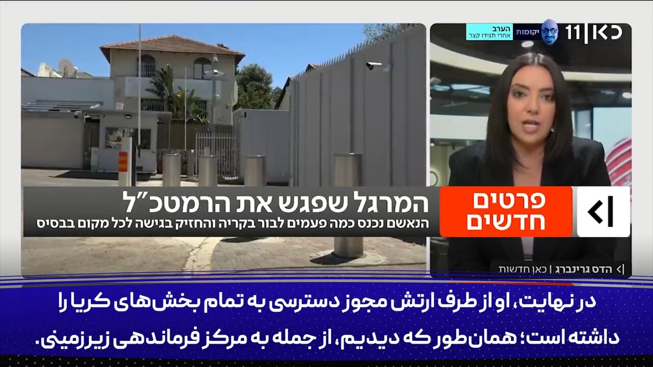 شبکه کان اسرائیل: فعالیت جاسوس ایران در چند قدمی رئیس ستاد ارتش اسرائیل و در مرکز فرماندهی زیرزمینی وزارت جنگ.