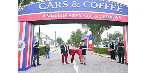 القائم بأعمال السفارة الأميركية ستيفن باتلر والمتحدث باسم السفارة ستيوارت ترنر لدى افتتاح احتفالية السيارات والقهوة (قاسم باشا)