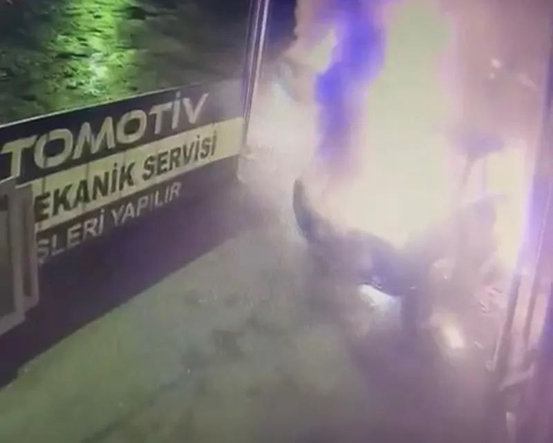 bir gün önce oto sanayiye bırakılan kazalı otomobil alev aldı