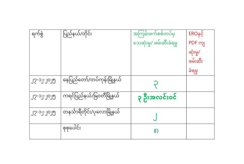 ရန်ကုန်၊ ဒီဇင်ဘာ ၂၇ မြန်မာနိုင်ငံတစ်ဝန်း ဒီဇင်ဘာလ ၂၇ ရက်နေ့ ရရှိထားသော အချက်အလက်များအရ စစ်ကောင်စီ တပ်ဖွဲ့ဝင် ၅ ဦး သေဆုံးကြောင်း ပြည်သူ့ကာကွယ်ရေးတပ်ဖွဲ့များ၏ ထုတ်ပြန်ချက်နှင့်ပြောဆိုချက် များအရ သိရှိရသည်။ ရန်ကုန်ခေတ်သစ်အနေဖြင့် နေ့စဉ် စစ်သား သေဆုံးမှု စာရင်းများကို ထုတ်ပြန် ရာတွင် ဒေသကာ ကွယ်ရေးတပ်ဖွဲ့များ၏ ထုတ်ပြန်ချက်များနှင့် ပြောဆိုချက် များကို စုစည်းဖော် ပြရခြင်းဖြစ်ပြီး မြေ ပြင် အခြေအနေတွင် အမှန်တကယ် စစ်သားများ သေဆုံးမှု ရှိ၊ မရှိ ကွင်းဆင်း အတည်ပြုနိုင်ခြင်း မရှိသည်ကို သိစေအပ်ပါသည်။ The post မြန်မာနိုင်ငံတစ်ဝန်း စစ်ကောင်စီတပ်ဖွဲ့ဝင် ၅ ဦးသေဆုံး appeared first on Khit Thit Media .