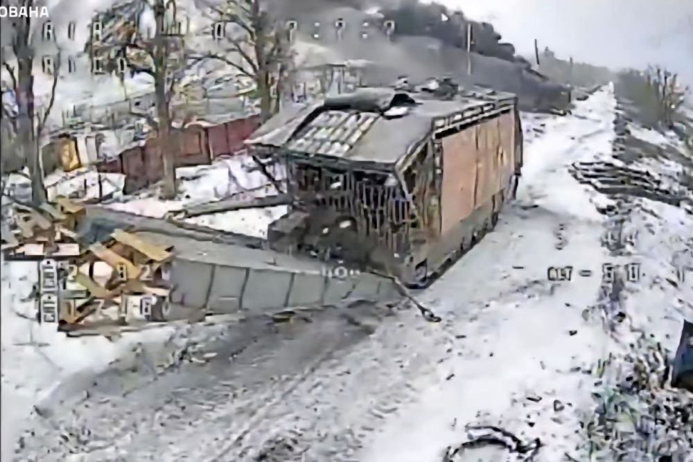 В объектив украинского FPV-дрона попало очередное чудо фронтовой смекалки, гибрид танка и мостоукладчика.