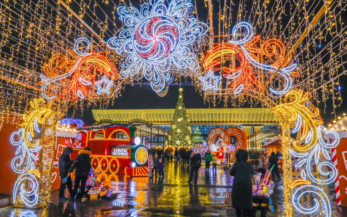 АЛМАТЫ. KAZINFORM — Алматы қаласы биыл Жаңа жылды ерекше тойлап жатыр. Әуежайдан Іле Алатауының етегіне дейін шаһар түгел жарықтандырылған. Kazinform агенттігінің фототілшісі қаланың мерекеге дайындығын суретке түсіру үшін маңызды орындарды аралады.