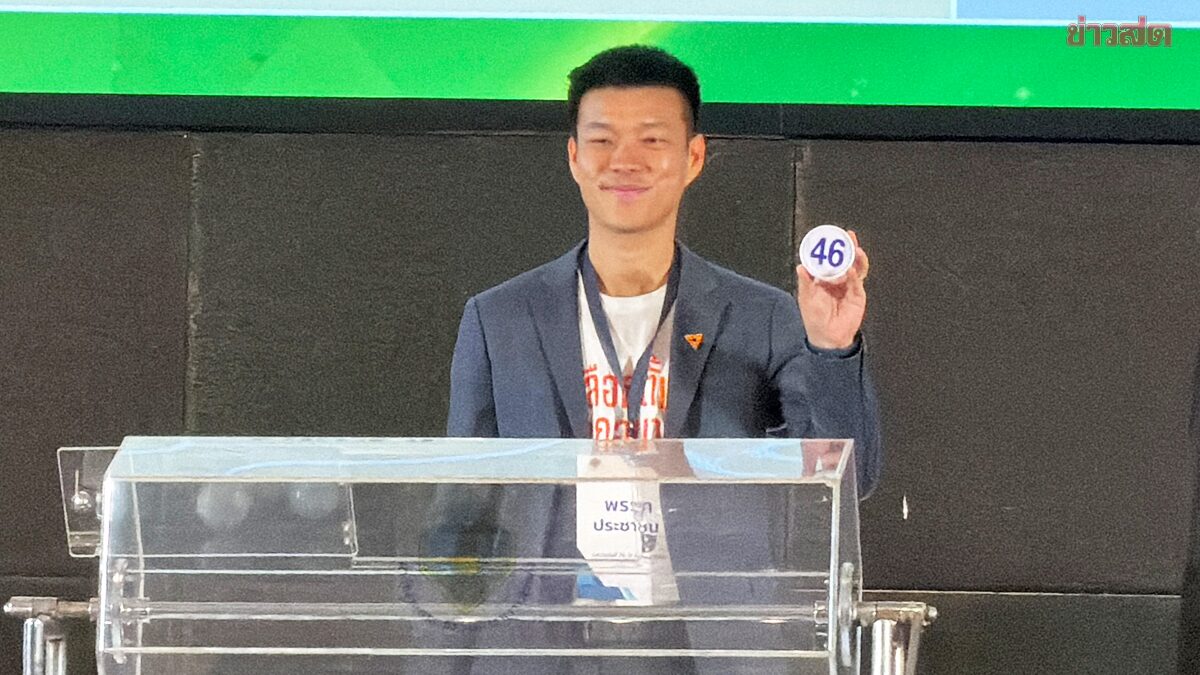 เท้ง จับหมายเลข พรรคประชาชน ได้เบอร์ 46 ไทยก้าวใหม่ เลข 49 ประชาธิปัตย์ 21