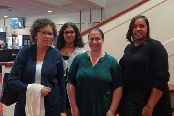 2025年12月27日下午, 公司老板Kelley Beverly(左一)和家人一起观看了神韵世界艺术团在在佛罗里达州杰克逊维尔的第一场演出。(林达/大纪元)