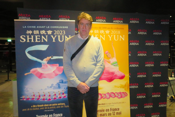 2025年12月27日晚,Marc Franzinetti在法国波尔多阿凯亚剧场观看了神韵国际艺术团2026演季在当地的首场演出。(盛明/大纪元)