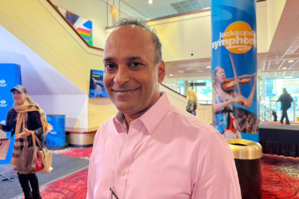 2025年12月27日下午,执业医师Davis Dahs观看了神韵世界艺术团2026演季在美国杰克逊维尔演艺中心的首场演出。(张启明/大纪元)