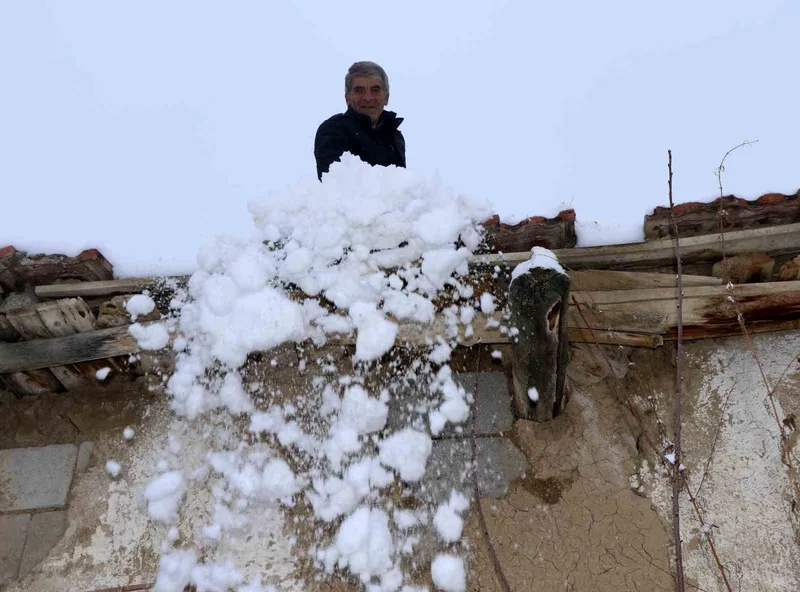 toprak damlı evlerde yaşayan vatandaşlar baca küreme işine koyuldu