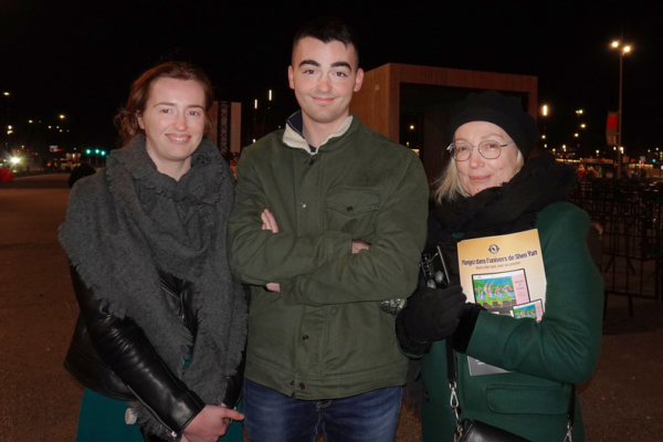 2025年12月27日晚间,品质经理Magalie Dubois(右一)带女儿和儿子在波尔多的阿凯亚剧场观看了神韵国际艺术团2026演季在当地的第一场演出。(亦凡/大纪元)
