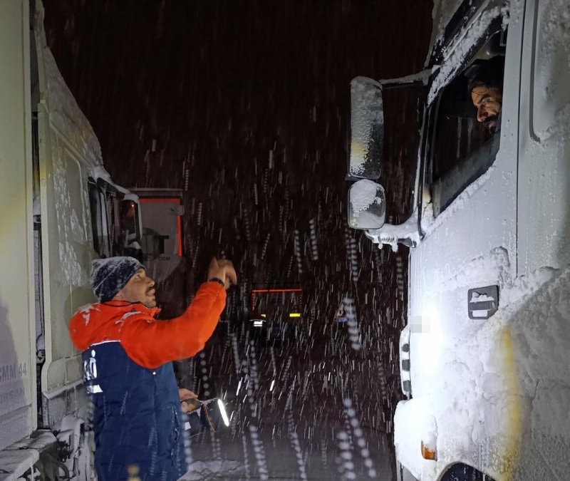 Ağrı ile Van’ı birbirine bağlayan Tendürek Geçidi’nde etkili olan yoğun kar yağışı ve tipi nedeniyle yaklaşık 100 araç yolda mahsur kaldı.
