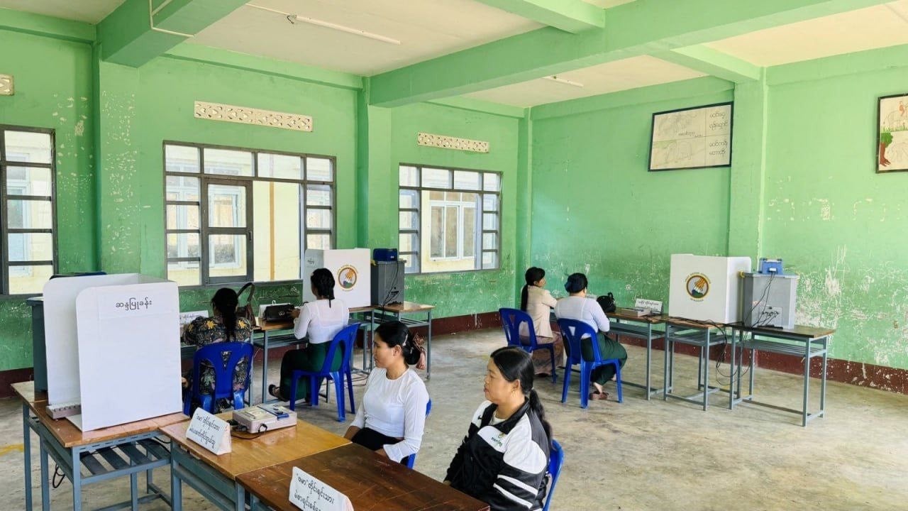 ဓါတ်ပုံ- စစ်ကော်မရှင်က ပြုလုပ်သည့် ၂၀၂၅ ခုနှစ်၊ ရွေးကောက်ပွဲ ပထမပိုင်းတွင် မဲရုံစောင့်များသာ ရှိပြီး မဲပေးသူမရှိသည့် မဲရုံတခုအား တွေ့ရစဉ် YT မဇ္ဈိမ။ ။ စစ်ကော်မရှင်က ပြုလုပ်နေသည့် ရွေးကောက်ပွဲ၌ လာရောက်မဲပေးသူ နည်းနေသည့်အတွက်… The post စစ်ကော်မရှင် ရွေးကောက်ပွဲ မဲပေးသူ နည်း၍ မဲလာပေးကြရန် နည်းမျိုးစုံဖြင့် ခေါ်နေ appeared first on BUR.MIZZIMA.COM .