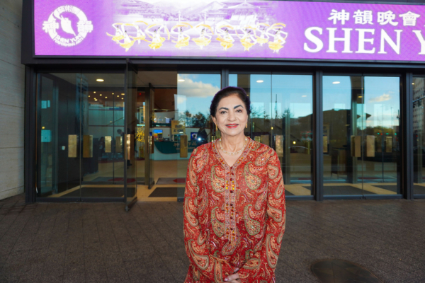 2025年12月27日下午,艺术人士兼企业老板Farah Habib 在休斯顿琼斯演艺中心观赏了神韵新世界艺术团2026演季在当地的第2场演出。(吴香莲/大纪元)