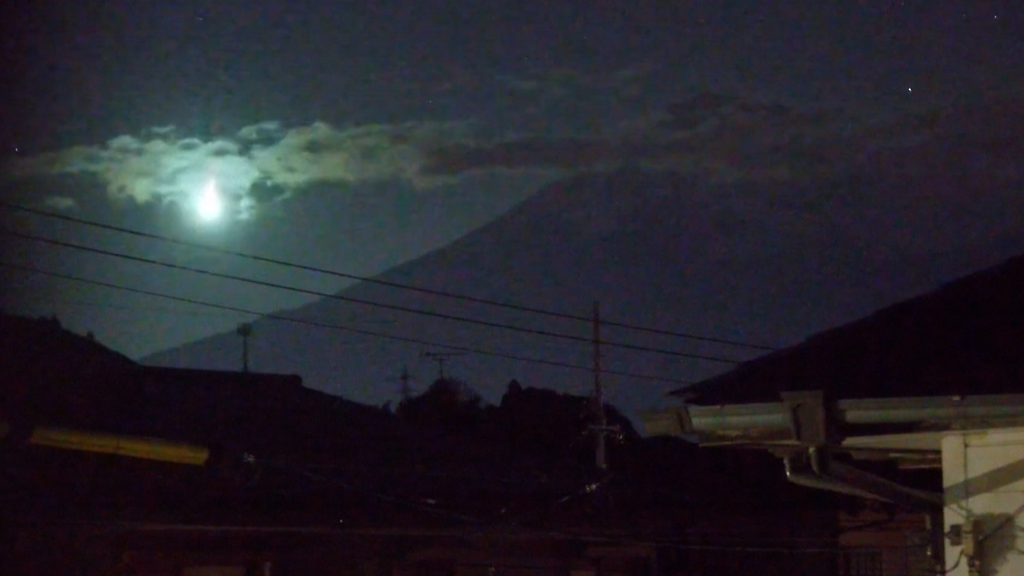 Japanin Hiratsukan kaupungin museon valvontakamera ikuisti hetken, jolloin meteori lensi yötaivaalla Japanin Fuji-vuoren yllä perjantaina.