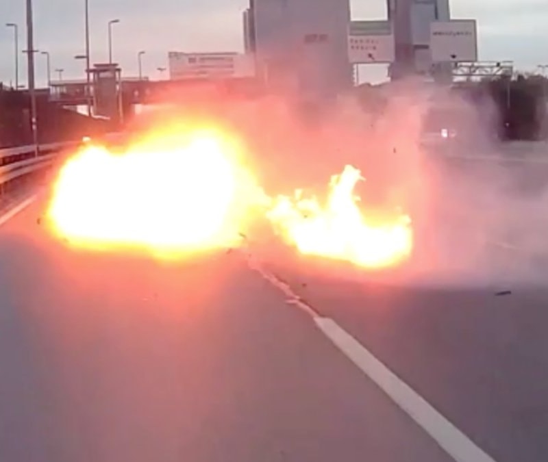 Şişli'de, bir otomobilin bariyerlere çarptıktan sonra motorunun alev alması başka bir aracın kamerasınca kaydedildi. Sürücünün makas atarken kaza gerçekleştirdiği görüldü.