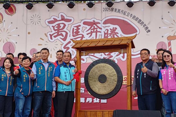 屏东万丹红豆牛奶节由万丹乡长李建霖以“红运开锣”揭开系列活动序幕。(万丹乡公所提供)