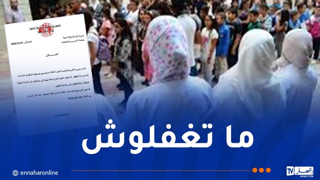 دعت مديريات التربية عبر مختلف ولايات الوطن، المترشحين لمسابقة توظيف الأساتذة بعنوان سنة 2025، إلى الولوج بصفة يومية. إلى حساباتهم على المنصة الرقمية.للاطلاع على وضعية ملفاتهم ومتابعة جميع المستجدات المرتبطة بعملية الترشح. وأفادت مديريات التربية، في إعلانات رسمية. أن هذه المتابعة ضرورية لضمان حسن سير عملية دراسة الملفات. وتمكين المترشحين من تدارك أي نقص أو […] The post مسابقة توظيف الأساتذة.. مُديريات التربية تصدر بيانا هاما appeared first on النهار أونلاين .