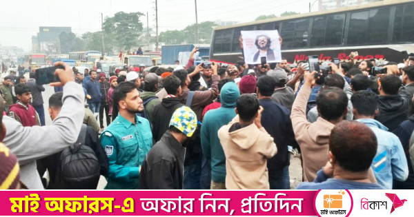 হাদির খুনিদের গ্রেপ্তারের দাবিতে ঢাকা-ময়মনসিংহ মহাসড়ক অবরোধ