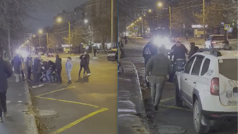 (video) „Gata, liniștiți-vă!” Un grup de persoane, filmat în timp ce se bat pe carosabil, la Botanica. La fața locului a intervenit un echipaj