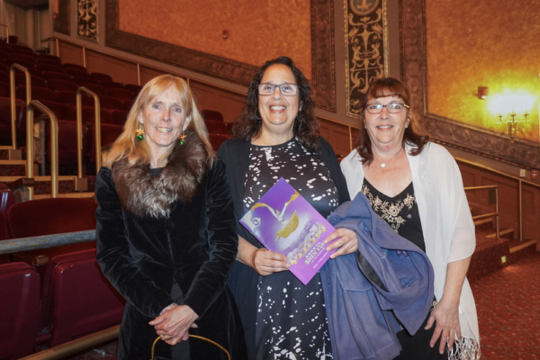 2025年12月27日晚, 设施维护主管Fran Odell(左)和朋友Concetta Perry(中) 及Nadine Bouthillier(右)观赏了神韵环球艺术团在沃特伯里派雷斯剧院(Palace Theater)的第二场演出(李有恒/大纪元)