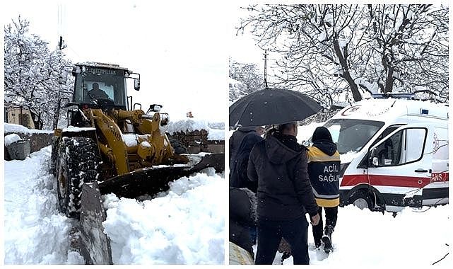 Hakkari'nin Derecik ilçesinde yolu kar nedeniyle kapanan kırsal mahallede rahatsızlanan hamile kadın, ekiplerce hastaneye ulaştırıldı.