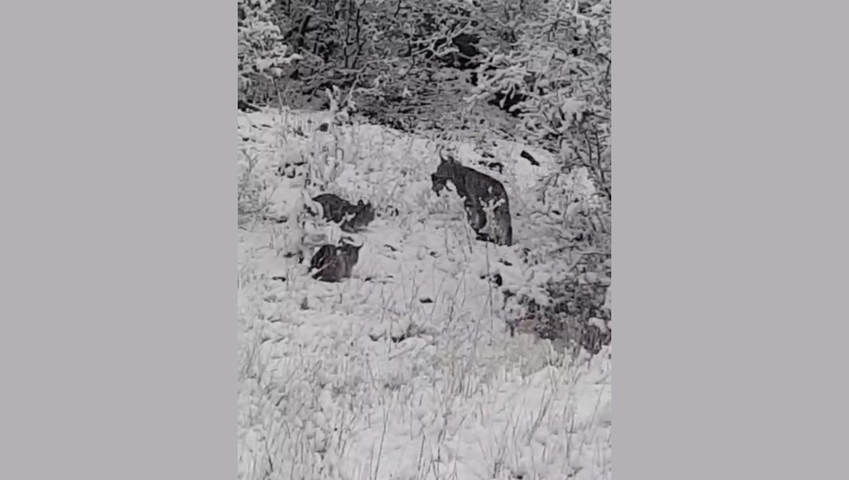 Elazığ'da avladığı kekliği yiyen vaşak ailesi kameralara yansıdı.