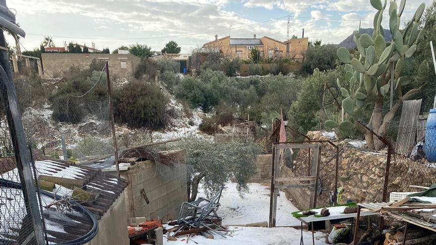 Una estampa poco habitual este domingo en Crevillent: la nieve ha hecho acto de presencia, especialmente en las zonas más elevadas de la sierra, un fenómeno atípico que ha dejado imágenes de campos cubiertos de blanco y algún que otro vecino jugando a tirarse bolas.