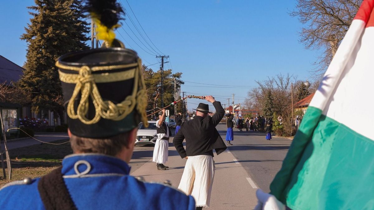 A csergetés Balástyán több tucat résztvevővel, népviseletben zajlott vasárnap délben.