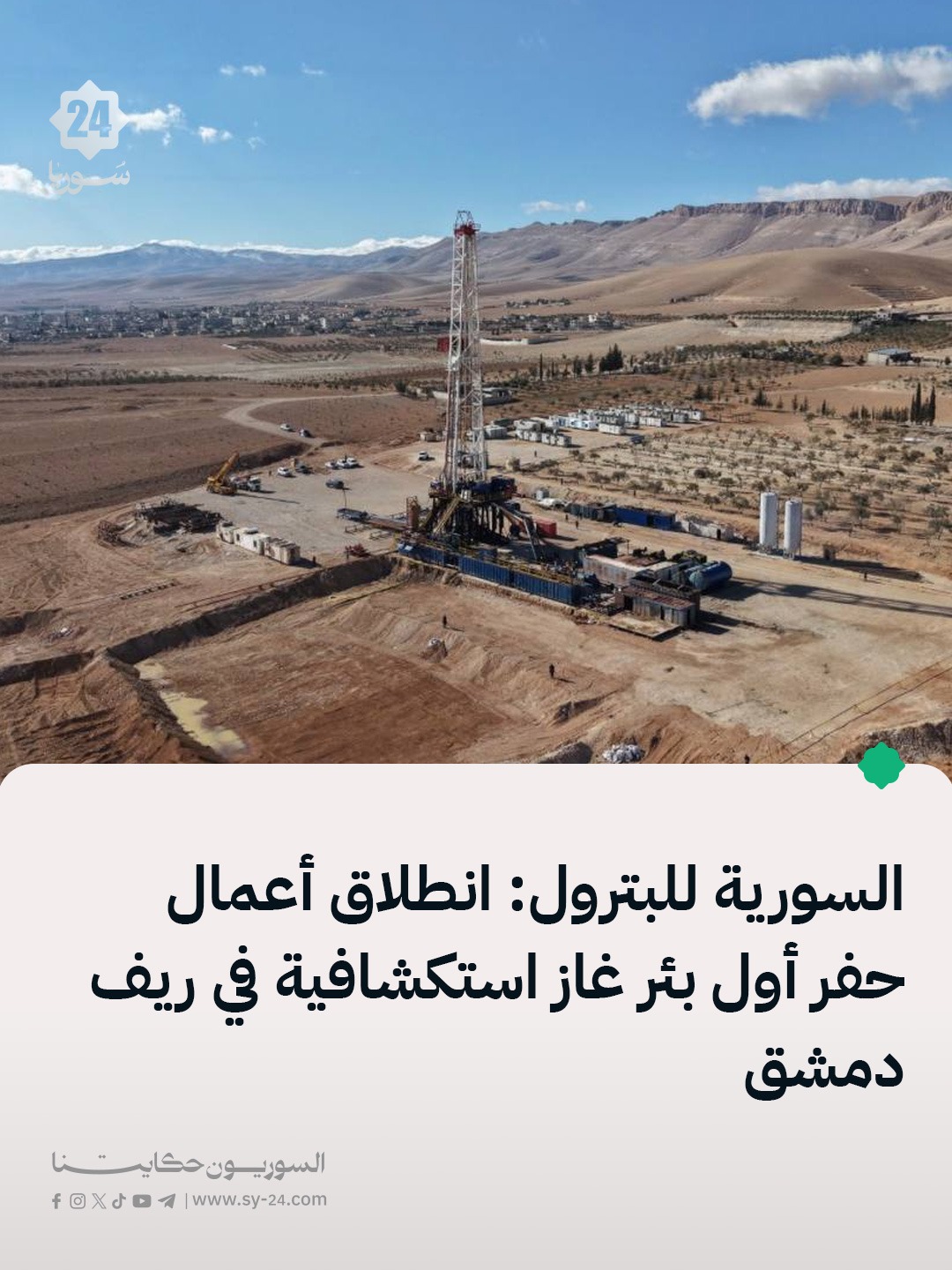 الرئيس التنفيذي للشركة السورية للبترول يوسف قبلاوي لسانا: انطلقت أعمال حفر أول بئر غاز استكشافية في منطقة التواني بريف دمشق بعمق يقارب 4 آلاف متر، ومن المتوقع بدء الإنتاج بعد نحو 5 أشهر الغاز المنتج سينقل إلى وحدات المعالجة لاستخدامه منزلياً وتزويد محطات توليد الكهرباء الحفارة التي باشرت العمل أُعيد تأهيلها وصيانتها بالكامل بعد توقف […] The post الرئيس التنفيذي للشركة السورية للبترول يوسف قبلاوي لسانا: appeared first on SY24 .