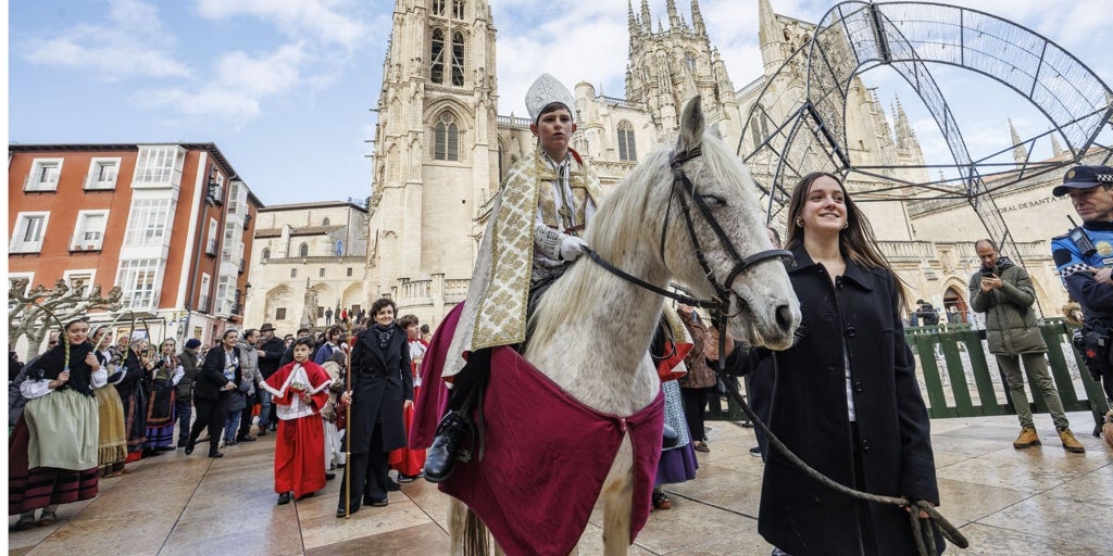 El joven Beltrán Rubio Tielve, elegido como Obispillo 2025 en la ciudad de Burgos , ha recorrido este domingo, 28 de diciembre, las céntricas calles de la capital para celebrar la tradicional festividad que conmemora el Día de los Santos Inocentes. En declaraciones a Ical poco antes de dar comienzo a la jornada, el pequeño de doce años y alumno del colegio La Salle de Burgos, ha asegurado estar "muy emocionado", ya que esta actividad supone «algo nuevo» para él, y estaba "muy ilusionado" de poder «ser parte de una tradición tan bonita». Un 28 de diciembre muy especial para Beltrán, que comenzó la jornada recibiendo sus vestiduras episcopales en el monasterio de las Salesas , para después viajar, a lomos de un caballo blanco, hacia el Ayuntamiento de la ciudad, donde le esperaba el alcalde en funciones para escuchar sus peticiones para el próximo año. Días antes, el joven Beltrán ya tenía preparados sus discursos, y muy claras las peticiones que iba a hacer en un día tan importante. Tal y como ha recordado, tanto él como su hermano pequeño decidieron apuntarse a la Escolanía de los Pueri Cantores por recomendación de un amigo, y les gustó tanto que decidieron seguir. El 'Obispillo' es un cargo que supone poder ser el representante de todos los niño s de la ciudad el 28 de diciembre. Se trata de una conocida figura, tradicional en los festejos navideños de la capital burgalesa desde hace décadas, y cuyos orígenes se remontan al siglo XV , cuando el Cabildo Metropolitano de la Catedral permitió este día que un niño se vistiera de obispo. Así, cada año se viste a uno de los niños de la Escolanía de los Pueri Cantores que haya recibido la Primera Comunión, y durante un día dispone del mando de la ciudad para pedir favores para los más pequeños. Sin embargo, esta tradición se vio truncada durante un largo periodo de tiempo con la desaparición de la Escolanía de la Catedral y no se retomó hasta el año 1996 gracias al esfuerzo del Cabildo