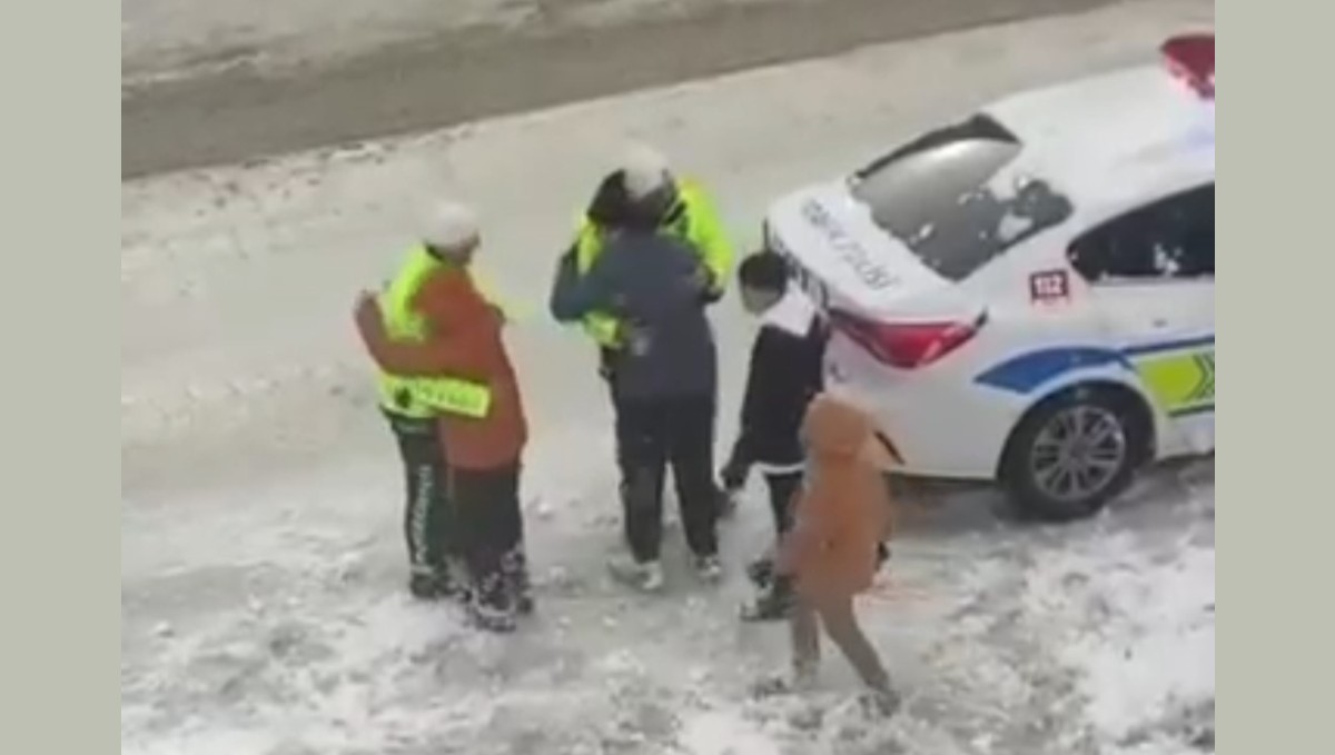 Van'da kar yağışıyla kent beyaza bürünürken, soğuk havaya rağmen yürekleri ısıtan anlar yaşandı. Görev başındaki trafik polisleri, karın tadını çıkaran çocuklara eşlik ederek onlarla kartopu oynadı.