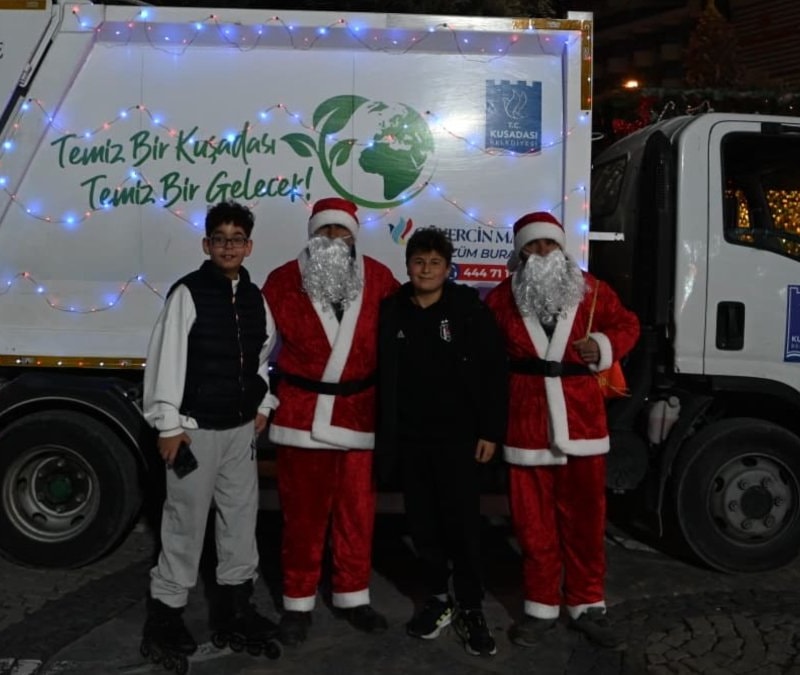 CHP'li Aydın Kuşadası Belediyesi, çevre temizliğine dikkat çekmek amacıyla Temizlik İşleri Müdürlüğü’ne bağlı çöp kamyonlarını ışıklarla süsleyip belediye işçilerine Noel Baba kostümlü giydirirken görüntüler tartışmalara neden oldu.