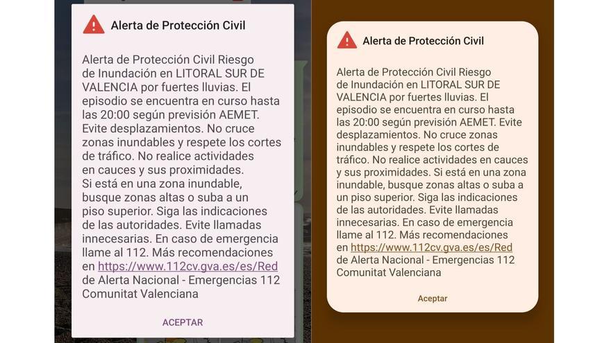 Protección Civil ha enviado un ES Alert a toda la provincia de Valencia por el episodio de fuertes lluvias que se está registrando este domingo. El mensaje urge a evitar desplazamientos, sobre todo en zonas inundables y a buscar zonas altas y subir a pisos superiores ante posibles inundaciones.