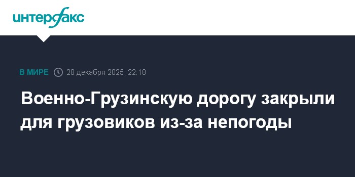 Движение грузовых автомобилей приостановлено на участке Военно-Грузинской дороги в Северной Осетии из-за непогоды, сообщает пресс-служба ГУ МЧС России по республике в воскресенье."В связи с ухудшением погодных условий на территории Грузии, невозможностью обеспечения безопасного проезда автотранспортных средств (...) запрещено движение большегрузных автотранспортных средств на участке город Владикавказ - населенный пункт Ларс в направлении на выезд из РФ с 21.