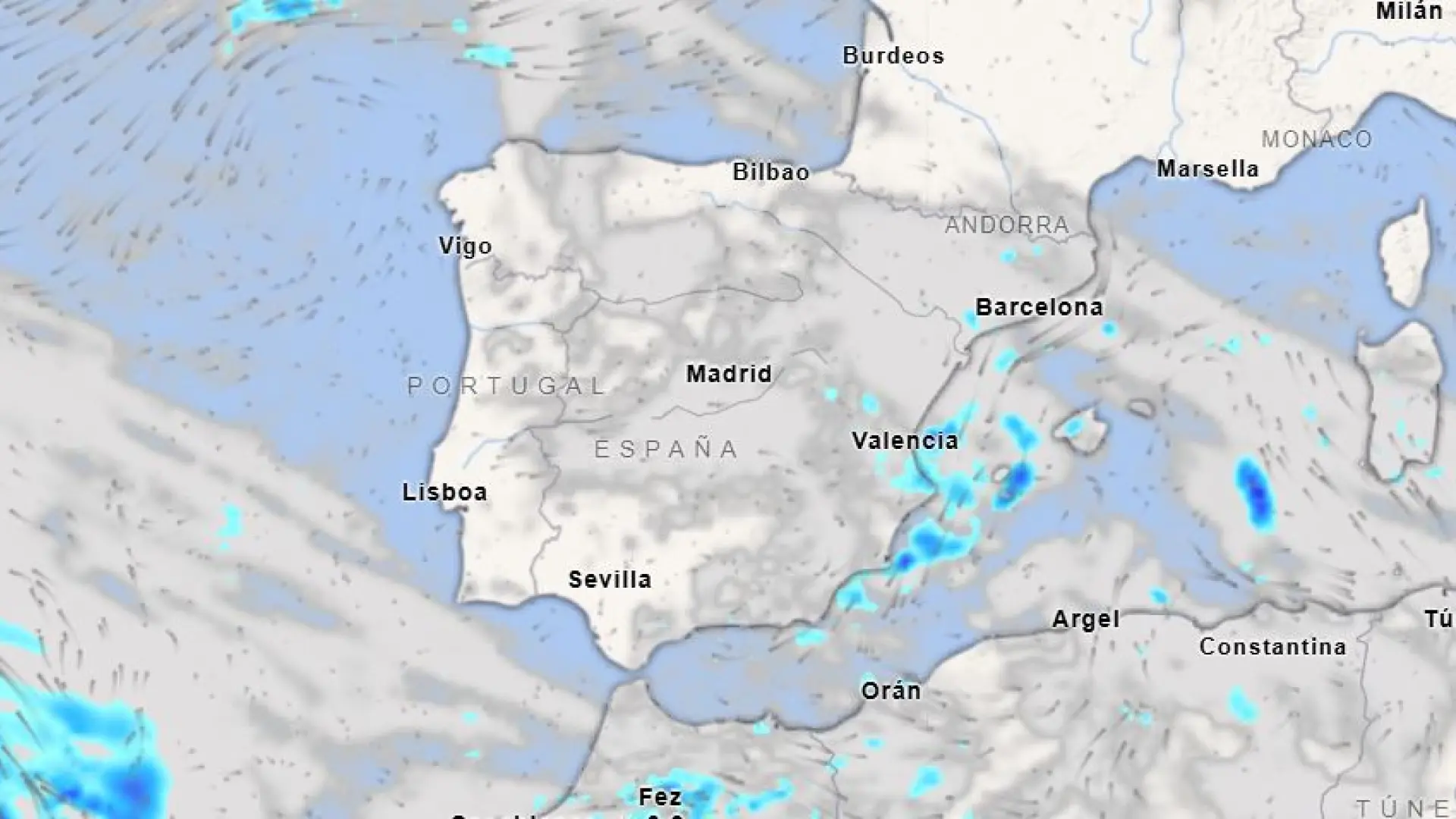 No obstante, aún se esperan precipitaciones localmente fuertes en la Comunidad Valenciana, Baleares y litorales de Almería y Murcia.
