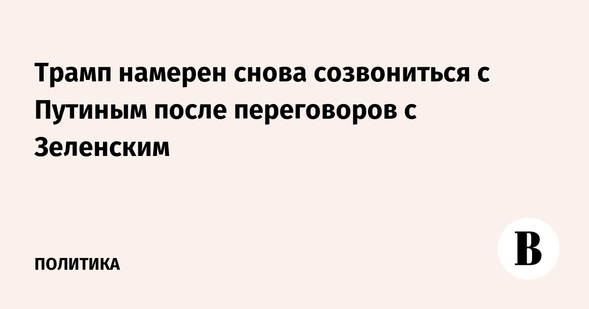 Трамп намерен снова созвониться с Путиным после переговоров с Зеленским