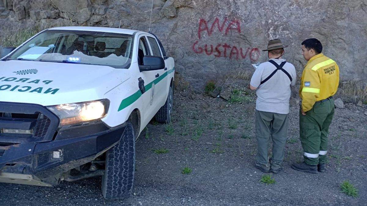 En las imágenes se observa al transportista pintando las piedras ante el reclamo de un vecino que pasaba por el lugar. La Intendencia del Parque Nacional Nahuel Huapi tomó cartas en el asunto.