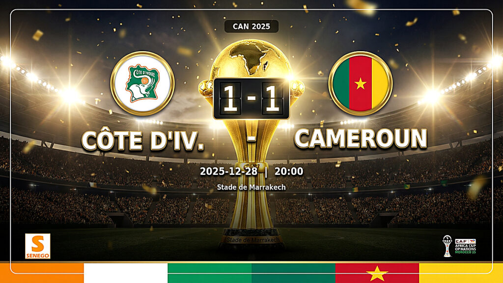 Dans le cadre de la Coupe d’Afrique des Nations 2025 qui se déroule au Maroc, le choc tant attendu du Groupe F entre la Côte d’Ivoire et le Cameroun s’est soldé par un match nul (1-1). Cette rencontre au sommet, disputée au Stade de Marrakech ce 28 décembre 2025, n’a pas permis de départager les […]