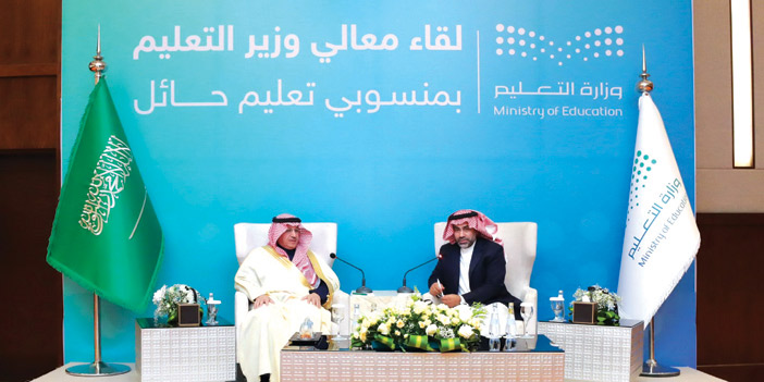 التقى معالي وزير التعليم يوسف بن عبدالله البنيان أمس الأحد عدداً من مديري ومديرات ومعلمي ومعلمات مدارس تعليم منطقة حائل، بحضور المدير العام للتعليم بمنطقة حائل الأستاذ عمر بن هجاد الغامدي ومديري ورؤساء الأقسام بالإدارة، واستهل معاليه كلمته خلال اللقاء برفع أسمى آيات