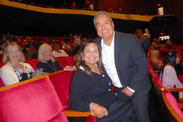 2025年12月28日下午,建筑公司工程项目经理Vincent Gonzales携太太Debbie Gonzales一起观赏了神韵新世界艺术团在休斯顿琼斯演艺中心(Jones Hall for the Performing Arts)的第四场演出。(良克霖/大纪元)