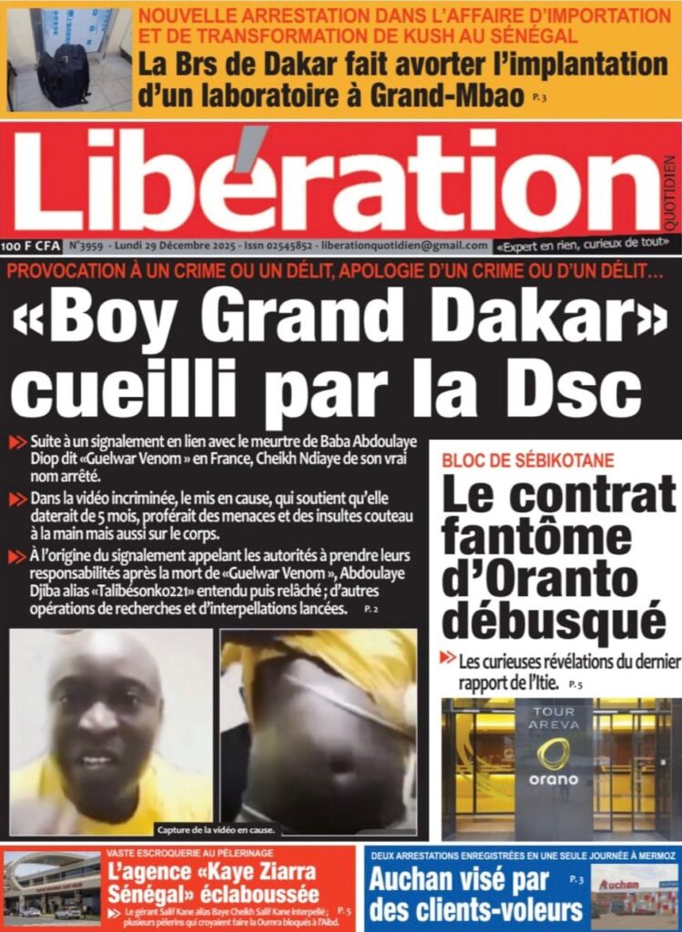 Découvrez les Unes des journaux sénégalais du lundi 29 décembre 2025