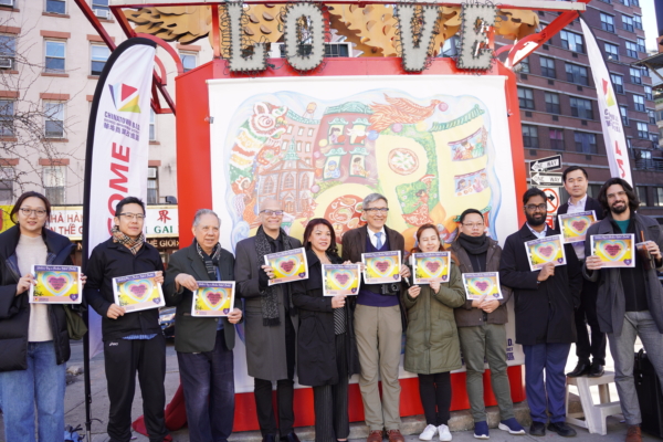 资料图。2023年2月10日,纽约市华埠商改区为信息亭新壁画“希望”揭幕。(林宜君/大纪元)