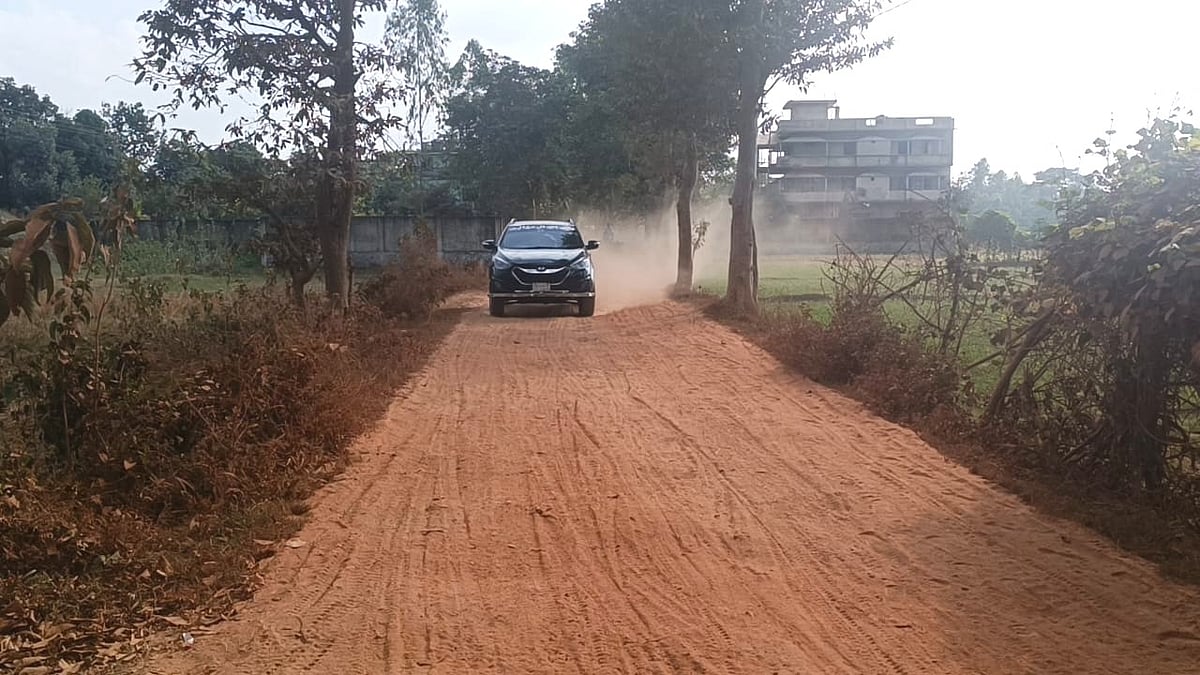 সড়কের দুই পাশে গাছপালা, ঘরবাড়ি ও দোকানপাটে ধুলার আস্তরণ জমেছে। অনেকেই ধুলা থেকে বাঁচতে মুখে কাপড় বেঁধে রেখেছেন। সড়কটি স্থানীয়ভাবে বাংলাবাজার সড়ক নামে পরিচিত।
