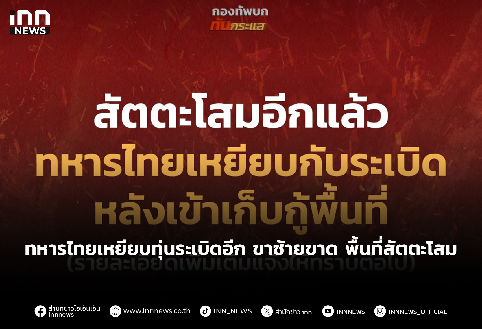 ทหารไทยเหยียบทุ่นระเบิดอีก 1ราย ในพื้นที่ “สัตตะโสม” ขาซ้ายขาด มีบาดแผลฉกรรจ์ที่ตาซ้าย