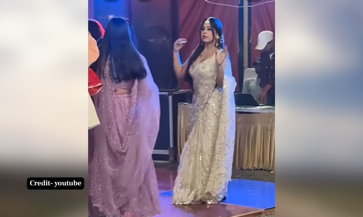 पवन सिंह के साथ 'कमरिया मोर चाकर' में नजर आ चुकी अंजलि राघव के हरियाणवी गाने खूब वायरल होते हैं, जिस पर लोग जमकर रील्स भी बनाते हैं. इनके हरियाणवी गानों का जलवा शादी-ब्याह के कार्यक्रमों में हमेशा ही सिर चढ़कर बोलता है. ऐसे ही एक हरियाणवी गाने 'मैडम नाचे'पर भाभी जी के डांस वीडियो ने इंटरनेट का तापमान बढ़ा दिया है. वीडियो में एक खूबसूरत महिला सफेद चमकीली साड़ी पहनकर 'मैडम नाचे' गाने पर बेमिसाल डांस करती नजर आ रही है. इनके स्टेप्स और गजब की फुर्ती को देख वहां मौजूद मेहमान भी दंग रह गए और लोग अपनी नजरें नहीं हटा पा रहे हैं. डीजे की धुन पर उसके लटके-झटकों ने पूरे माहौल को मस्ती से भर दिया है.
