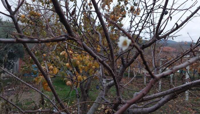 Manisa’nın Sarıgöl ilçesinde etkili olan zemheri soğuklarına rağmen bir erik ağacının çiçek açması şaşkınlık yarattı.