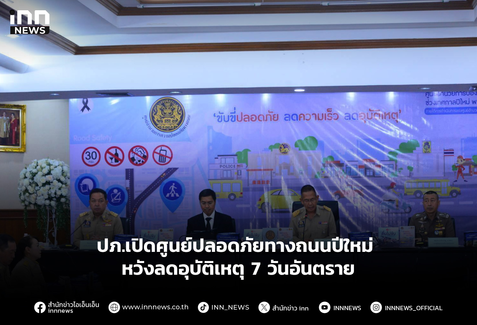 ปภ. เปิดศูนย์อำนวยการความปลอดภัยทางถนนช่วงปีใหม่ 2569 บูรณาการทุกภาคส่วน ลดอุบัติเหตุ–ลดการสูญเสีย – ตร.ระดมกำลัง 24,000 นาย คุมเข้ม 7 วันอันตราย