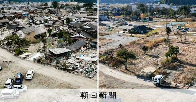 広がる更地、残る傾いた電柱 能登半島地震2年、ドローンで見た変化